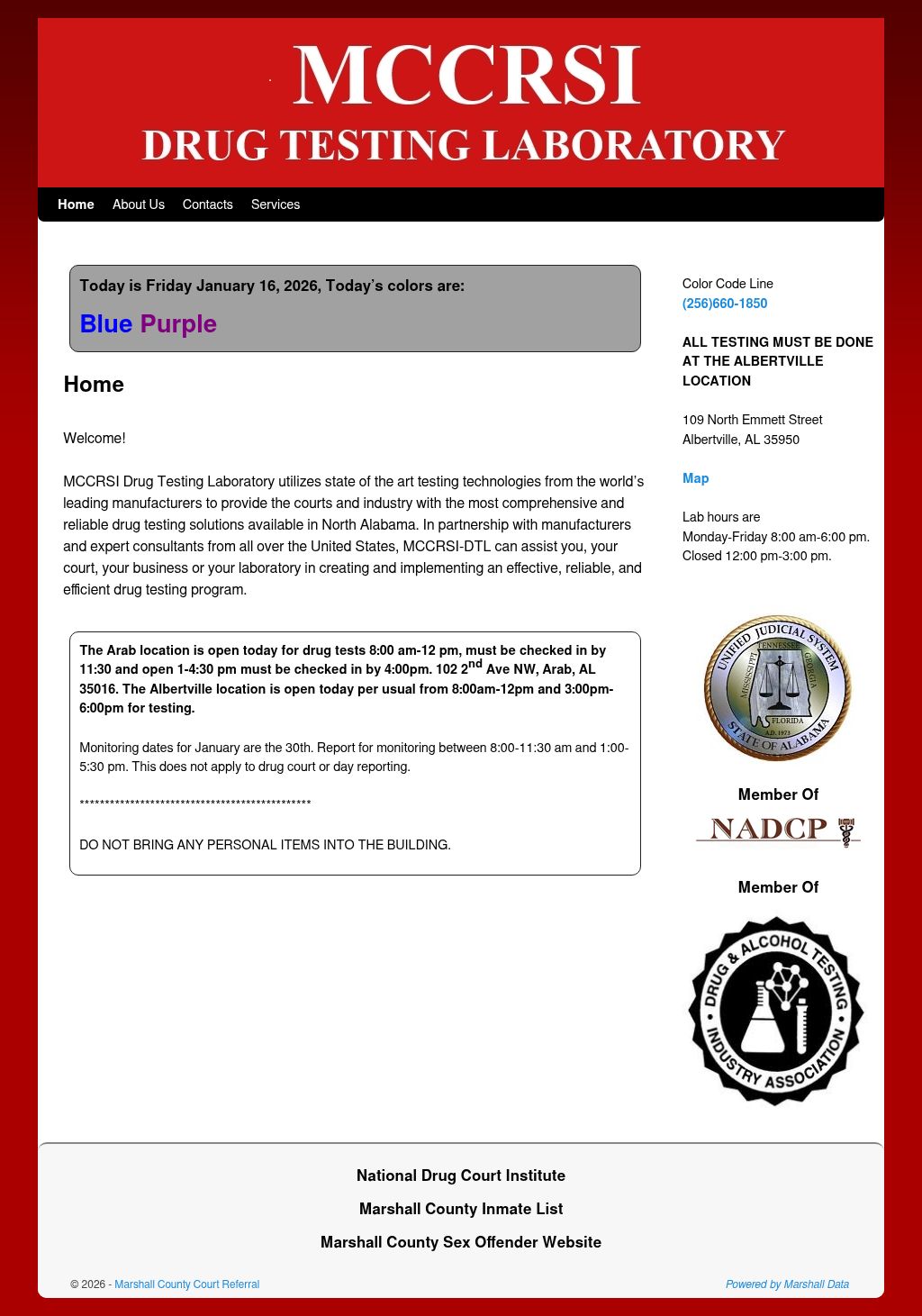 Today, there are 2 drug testing colors required to test at MCCRSI Laboratory. The colors are Blue and Purple. There are a total of 27 probation test colors at MCCRSI Laboratory. Below we calculated the colors history of each of these testing colors over the last 90 days.