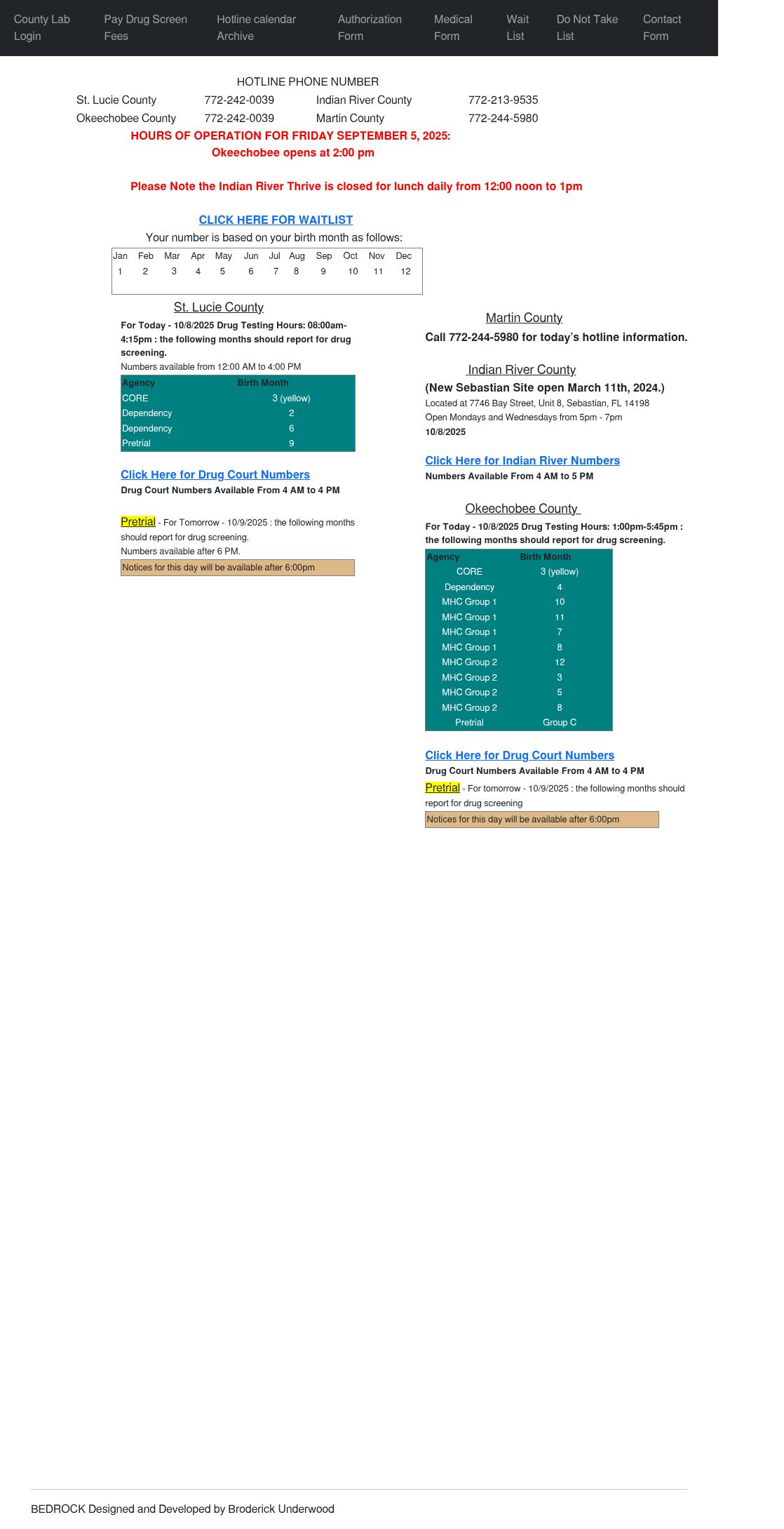 Today, there are no drug testing groups required to test at Indian River County. There are a total of 12 probation test groups at Indian River County. Below we calculated the groups history of each of these testing groups over the last 90 days.