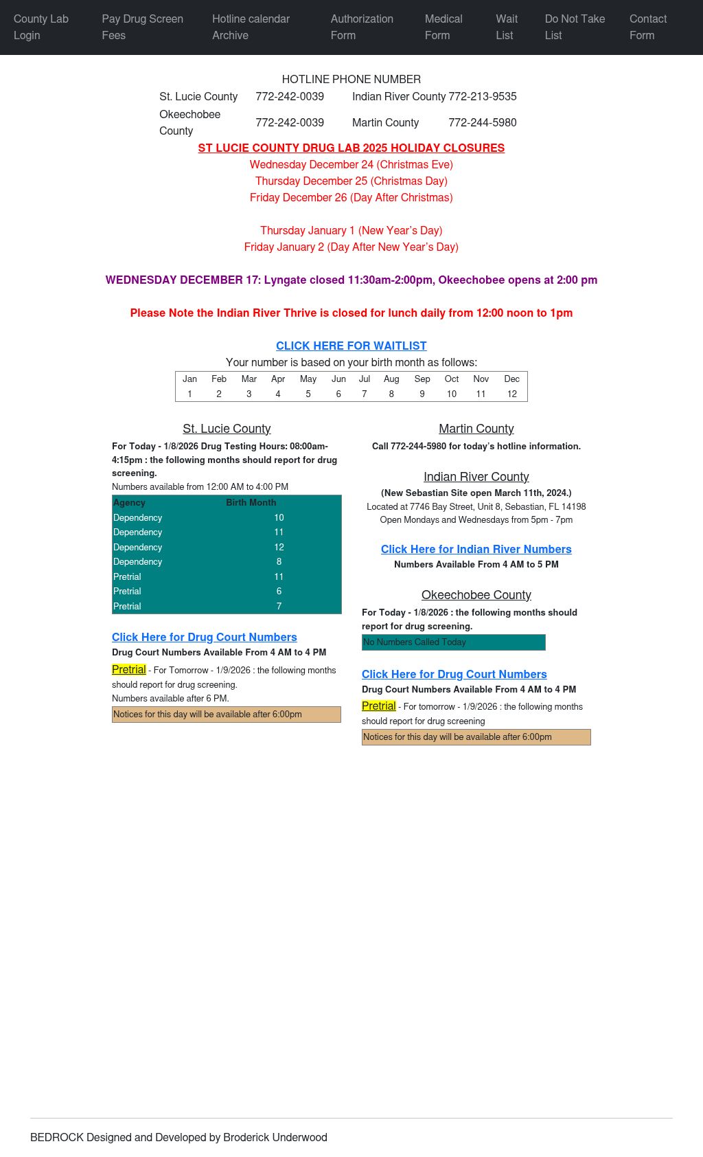 Today, there are no drug testing groups required to test at Martin County. There are a total of 12 probation test groups at Martin County. Below we calculated the groups history of each of these testing groups over the last 90 days.