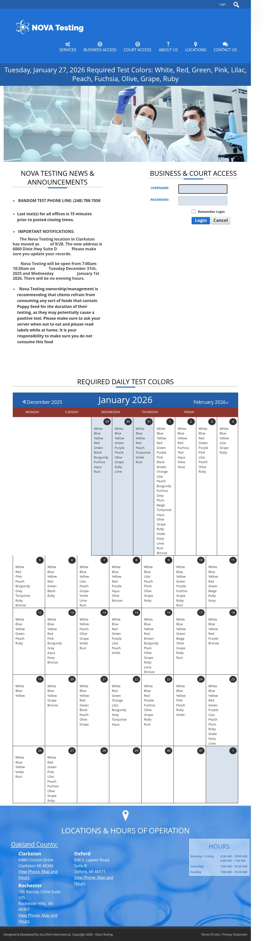 10 test colors are required to test on 01/27/2026