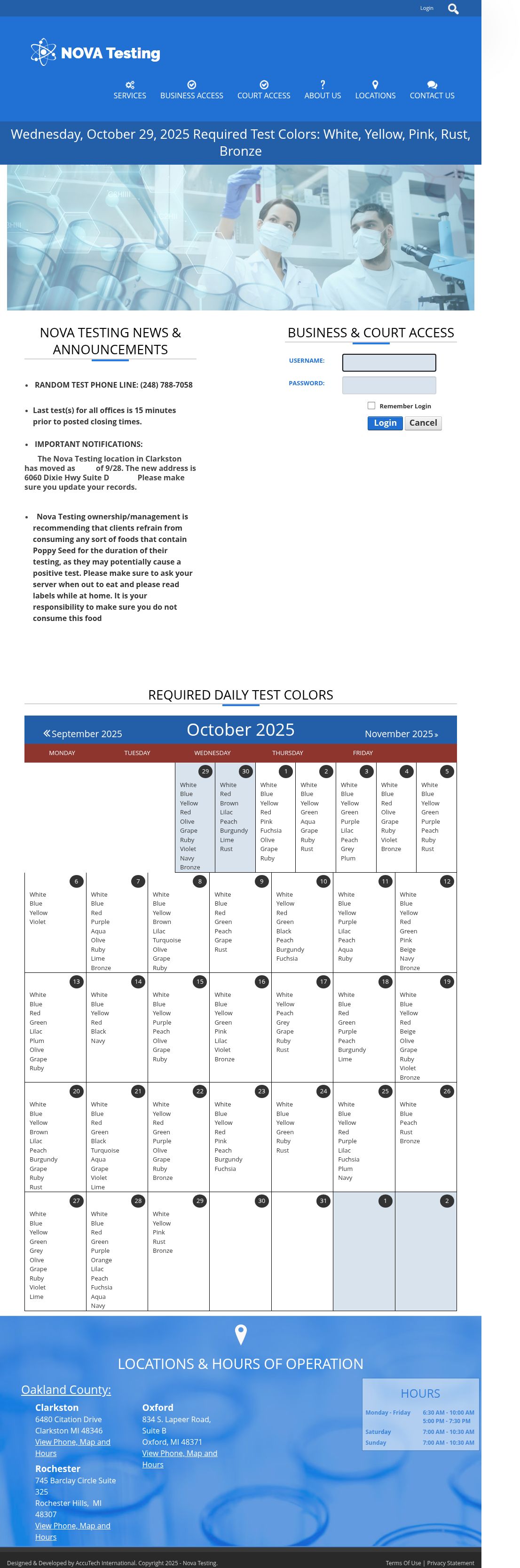 5 test colors are required to test on 10/29/2025