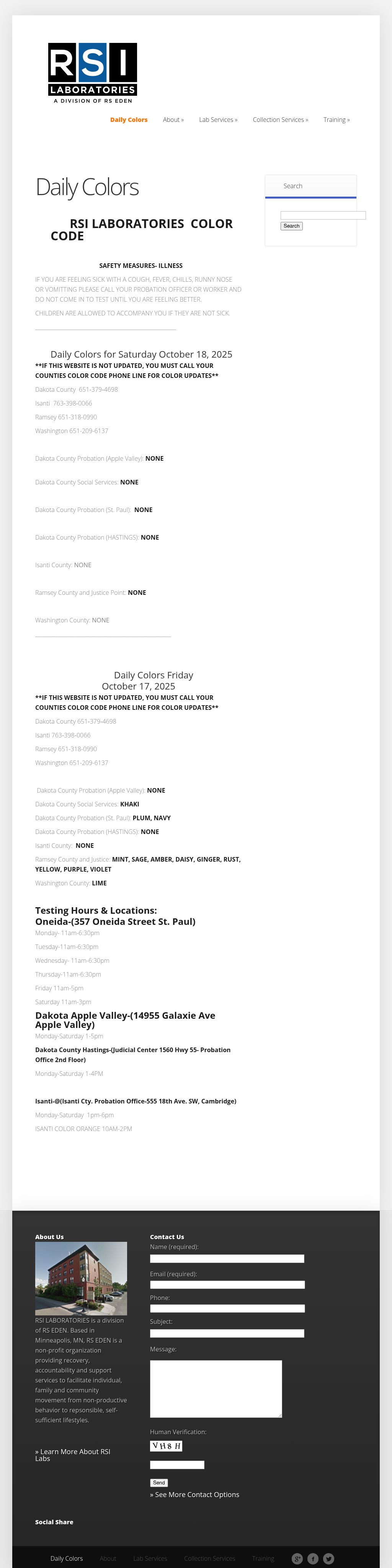 Today, there are no drug testing colors required to test at RSI Isanti County. There are a total of 3 probation test colors at RSI Isanti County. Below we calculated the colors history of each of these testing colors over the last 90 days.